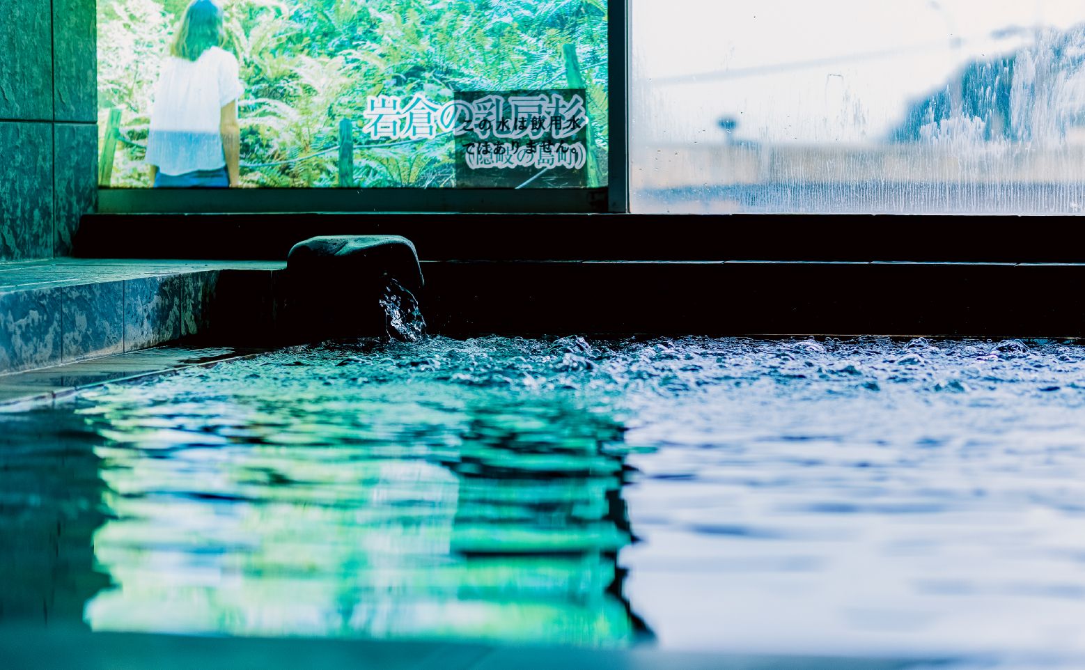 隠岐ジオパークの石「隠岐片麻岩」を浴槽に敷き詰めました。