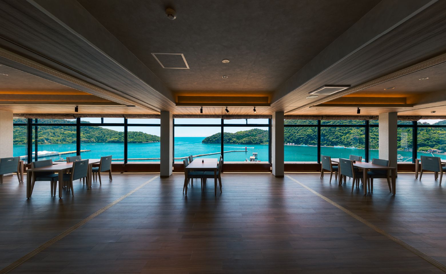 島前・島後からなる隠岐の島をイメージし、ラウンジの中から眺める「まえ」、足を踏み入れて愛でる「うしろ」で構成しています。